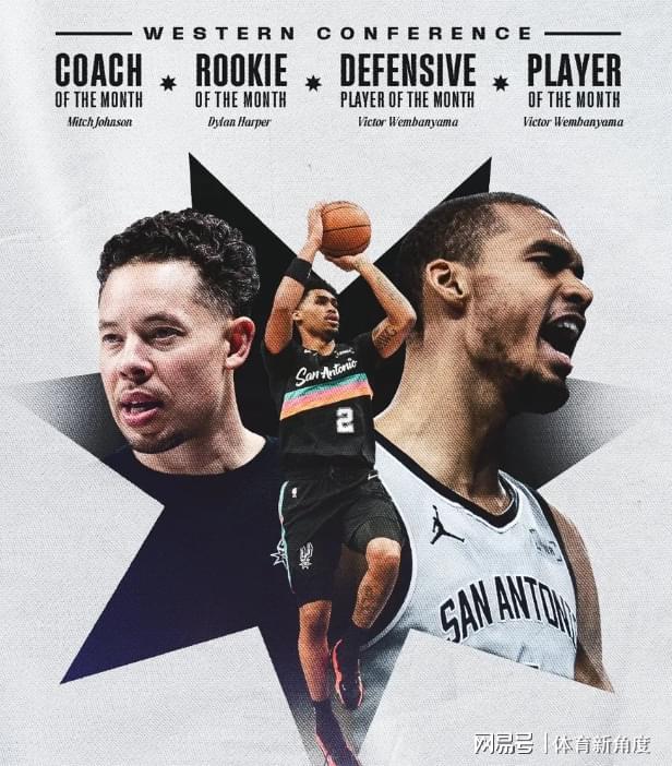 东部各队竞争激烈、百花齐放,而西部马刺队却一枝独秀,所有月度最佳奖项均被马刺队收入囊中。最佳球员、最佳防守球员、最佳新秀、最佳主帅,无一例外。试问,一支球队要达到怎样的高度,才能包揽所有奖项呢?这恐怕是NBA历史上首次出现一支球队包揽所有月度最佳奖项的情况吧,实在是令人惊叹!
