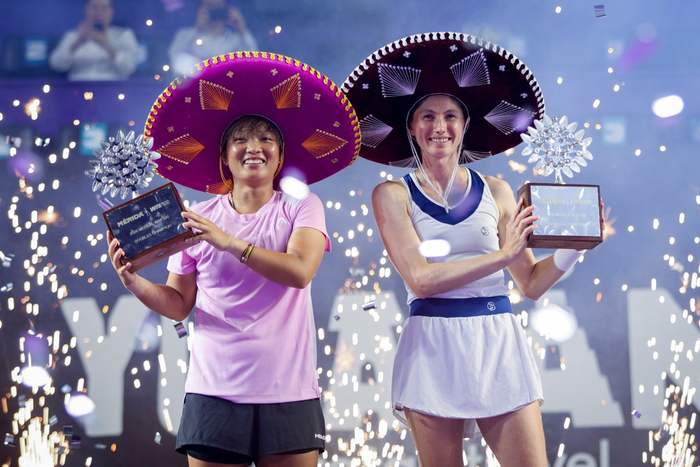 布克沙(右)搭档中国球员蒋欣玗(左)夺得WTA500梅里达站双打冠军