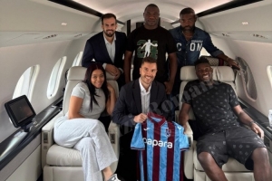 AYX GAMES-奥纳纳与家人、经纪人在飞机上合影,展示特拉布宗体育球衣